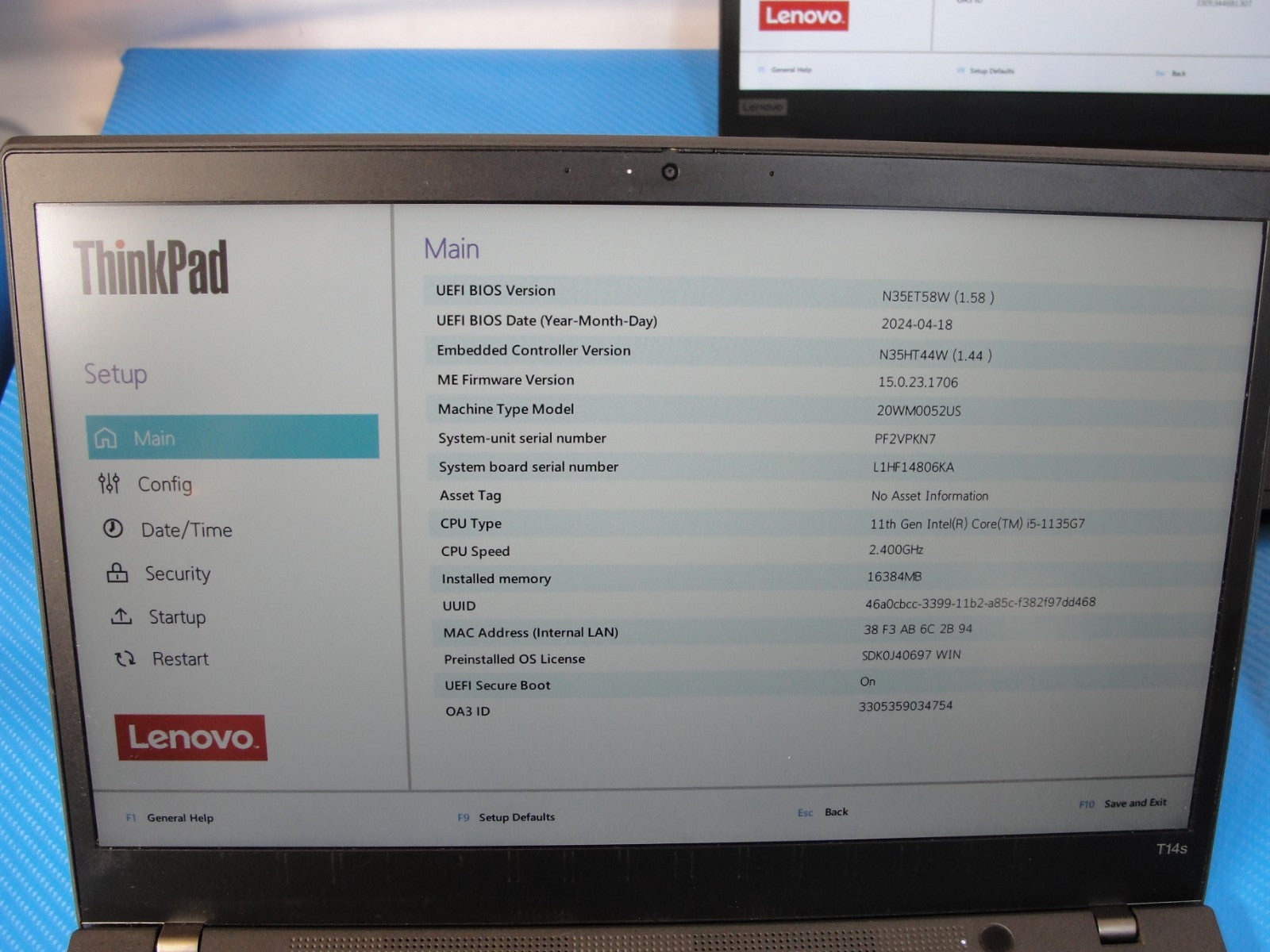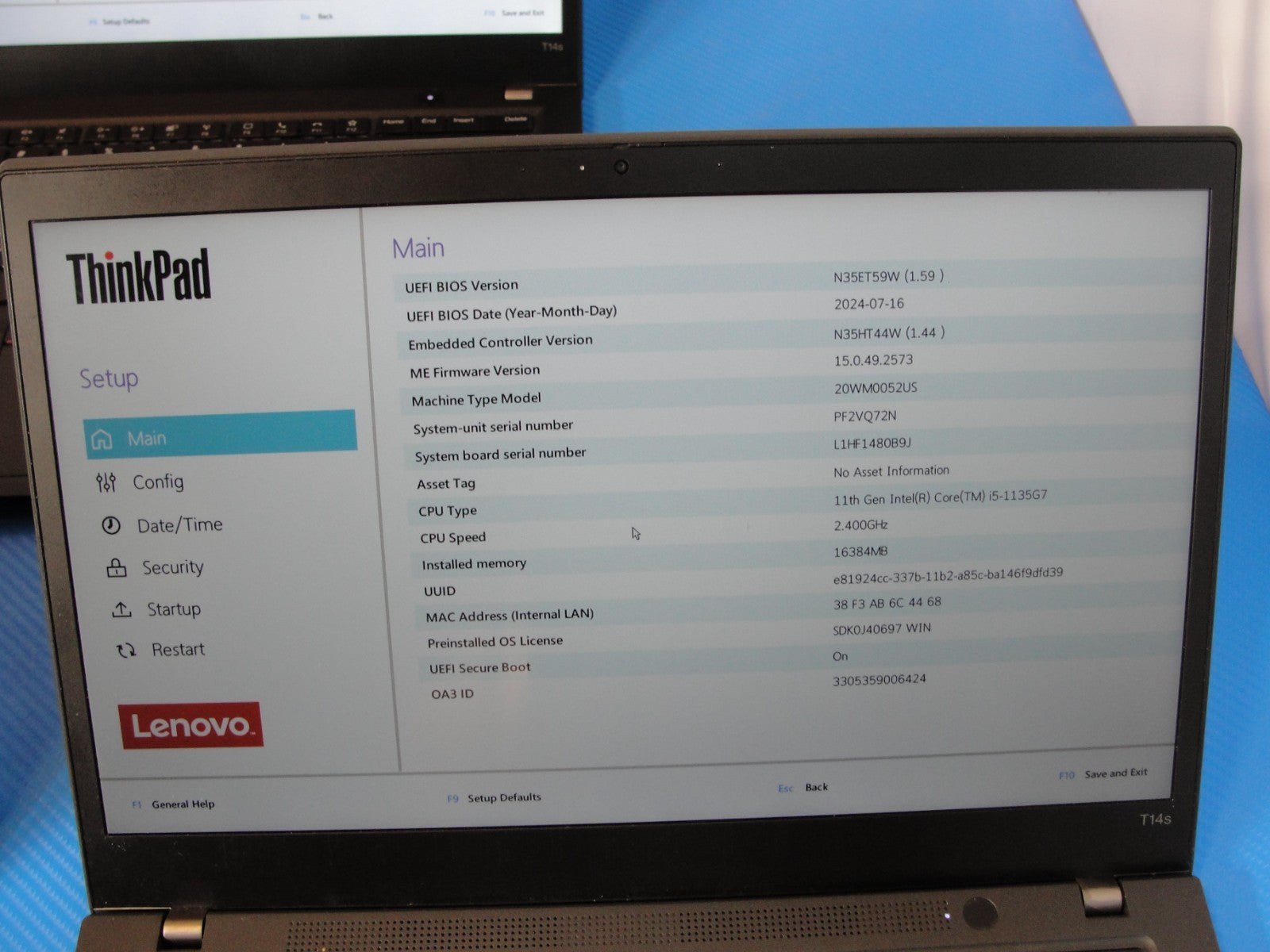 Model: Lenovo ThinkPad T14s Gen 2