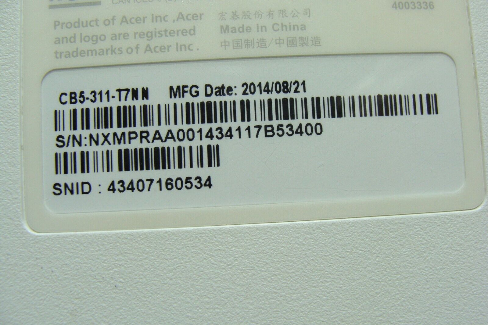 - Acer Chromebook CB5-311 13.3" Bottom Case Base Cover AP176000100 Acer Chromebook CB5-311 13.3" Bottom Case Base Cover AP176000100