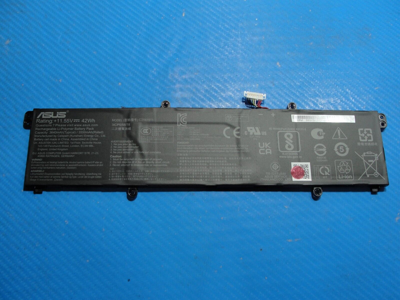 - Asus ExpertBook B1402CGA-XH14 14" Battery 11.55V 42Wh 3550mAh C31N1911 100% Asus ExpertBook B1402CGA-XH14 14" Battery 11.55V 42Wh 3550mAh C31N1911 100%