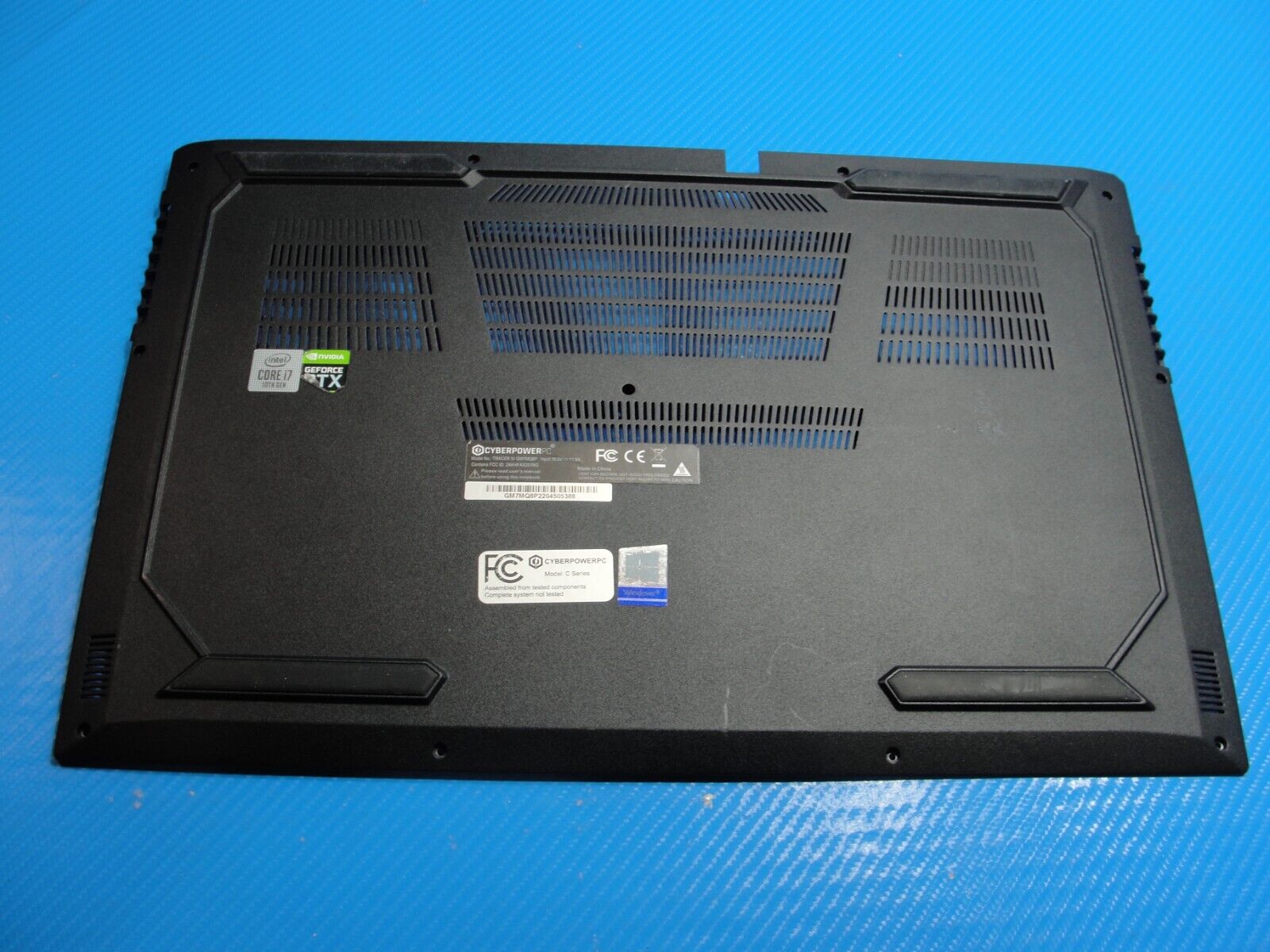 Bottom Case has been gently removed from a working CyberPower PC Tracer IV GM7MQ8P laptop and is in GOOD working and cosmetic condition, shows faint signs of previous use. Actual item pictured.