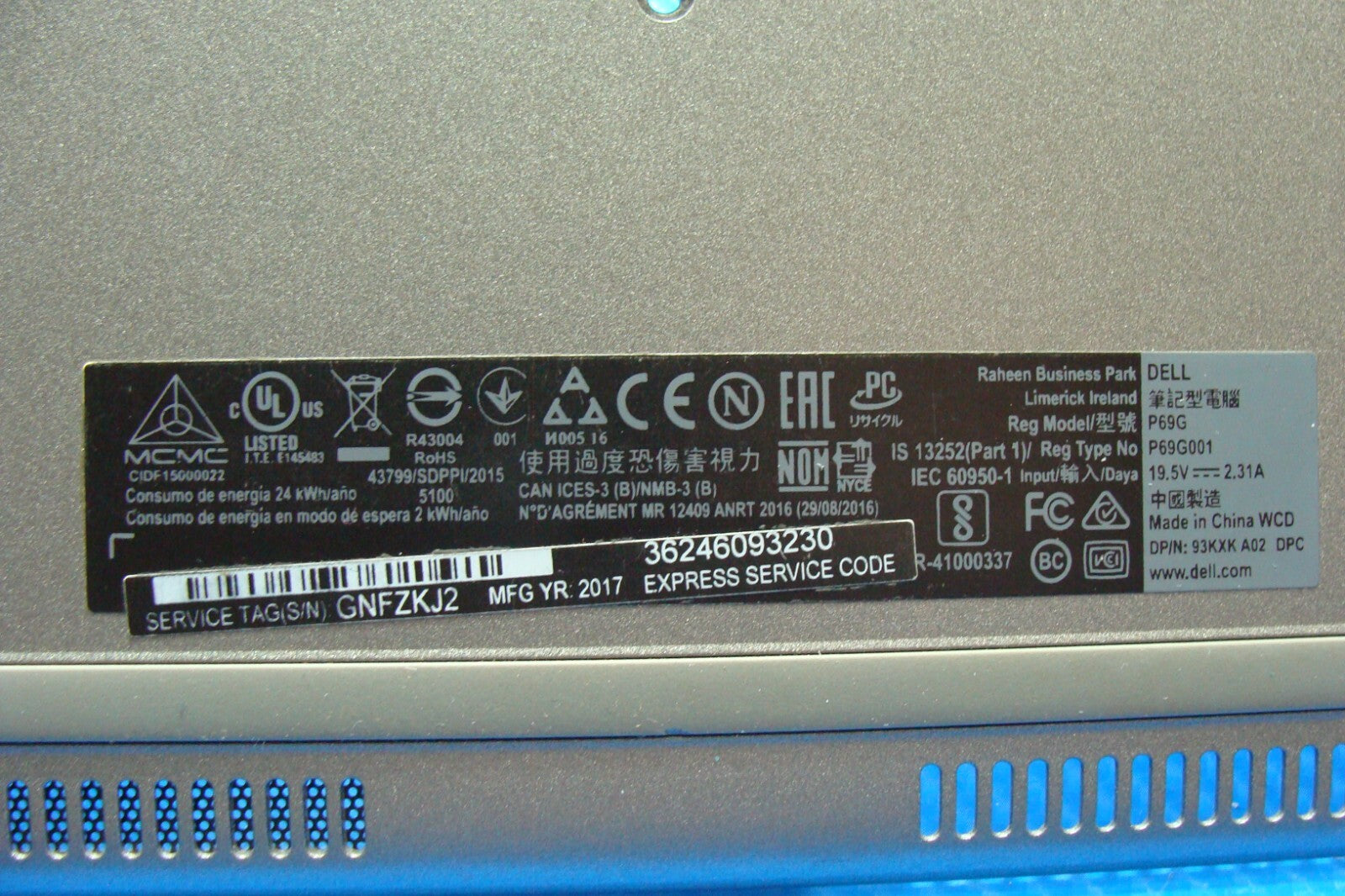 - Dell Inspiron 13 5378 13.3" Bottom Case Base Cover KWHKR 460.07R0A.0014 Dell Inspiron 13 5378 13.3" Bottom Case Base Cover KWHKR 460.07R0A.0014