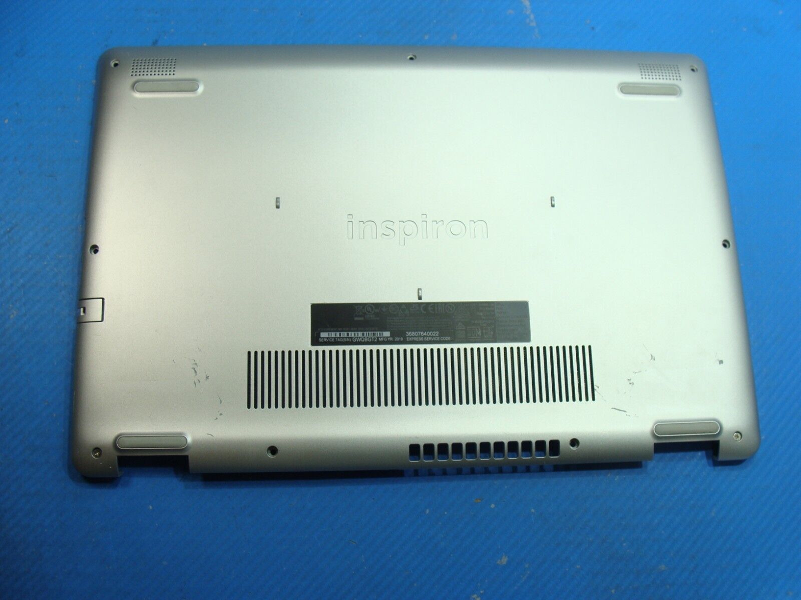 Bottom Case has been gently removed from a working Dell Inspiron 15 5584 laptop and is in GOOD working and cosmetic condition. Shows minor scratches and marks. Actual item pictured.