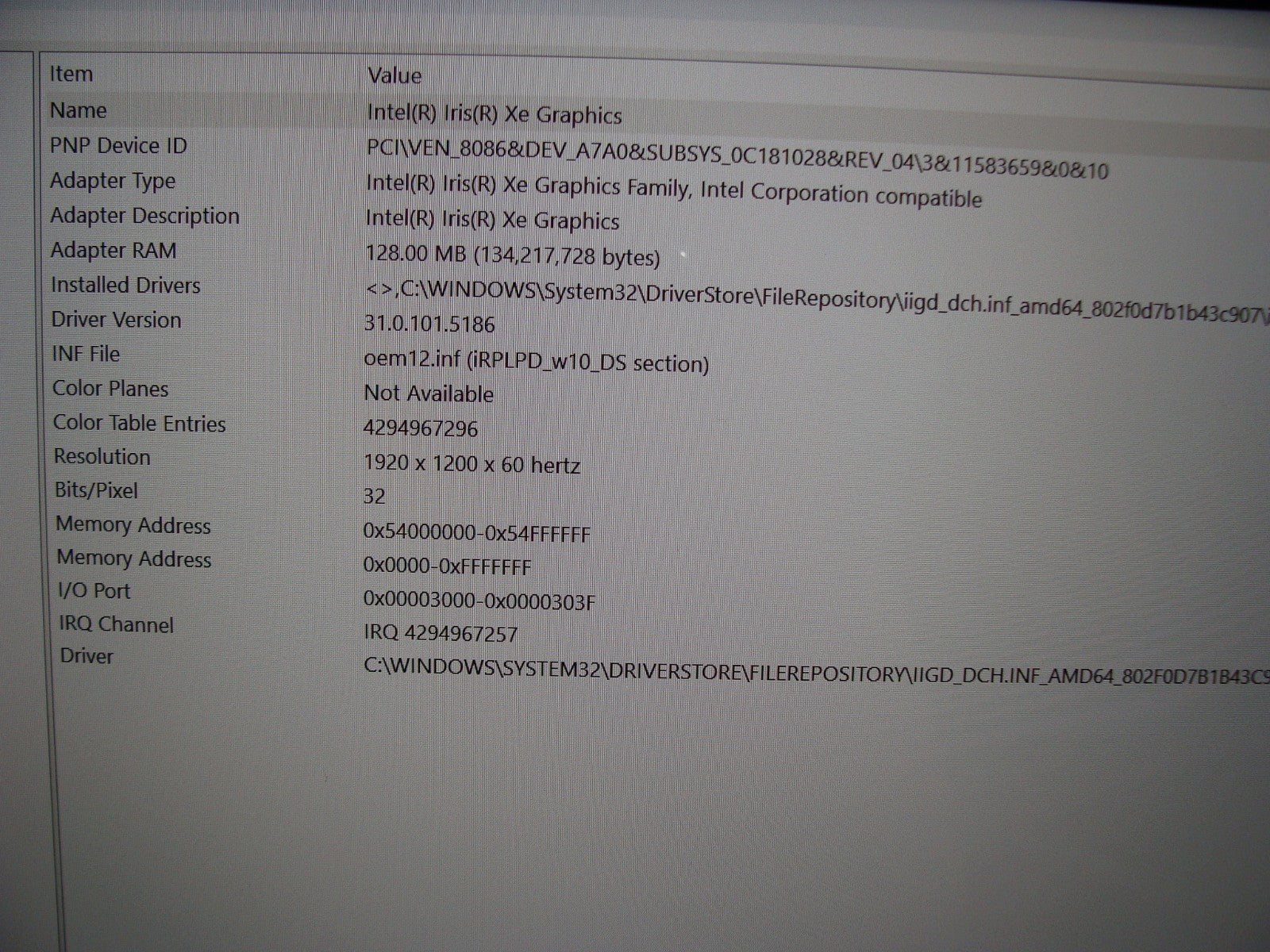 GPU: Intel(R) Iris(R) Xe Graphics