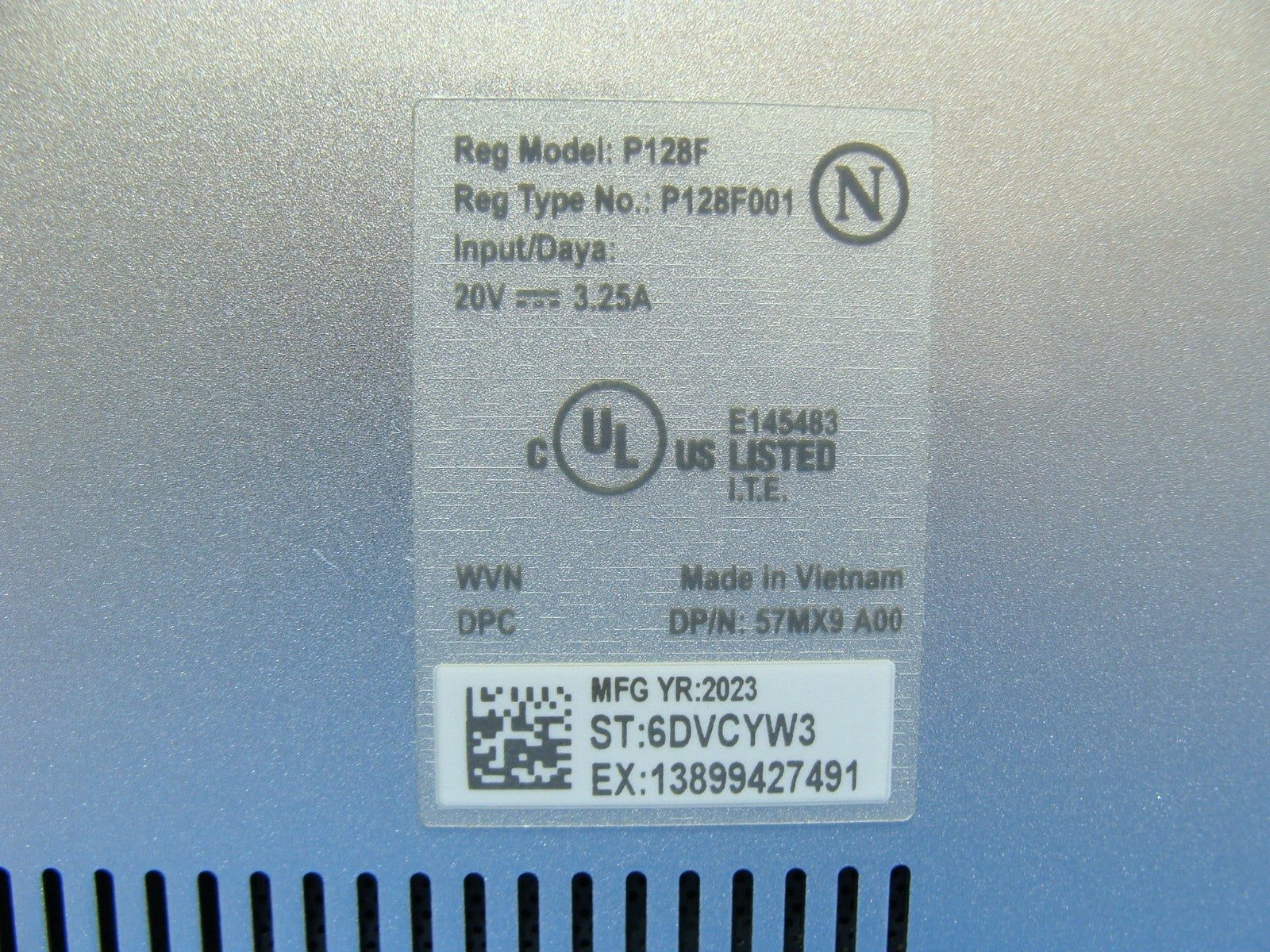 Includes original Dell 65 W power adapter.