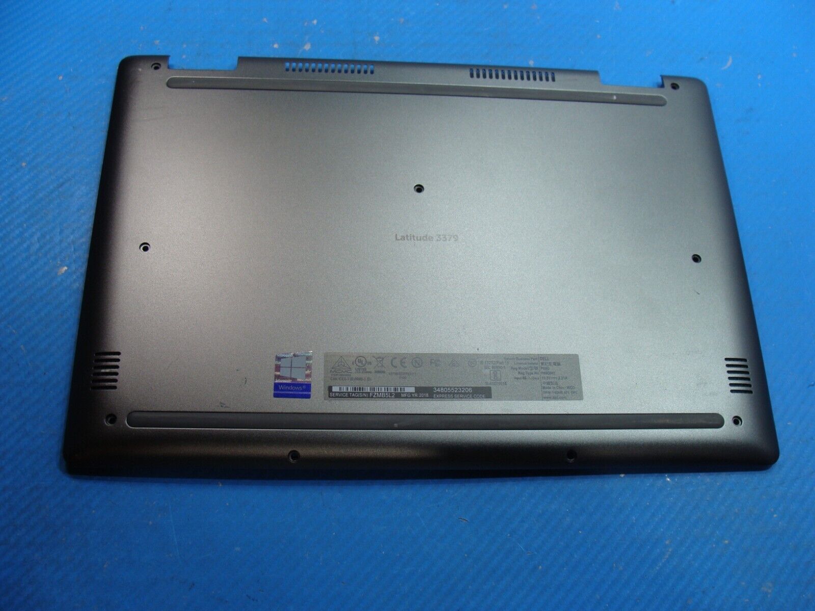 Bottom Case has been gently removed from a working Dell Latitude 3379 laptop and is in VERY GOOD working and cosmetic condition, shows faint signs of previous use. Actual item pictured.