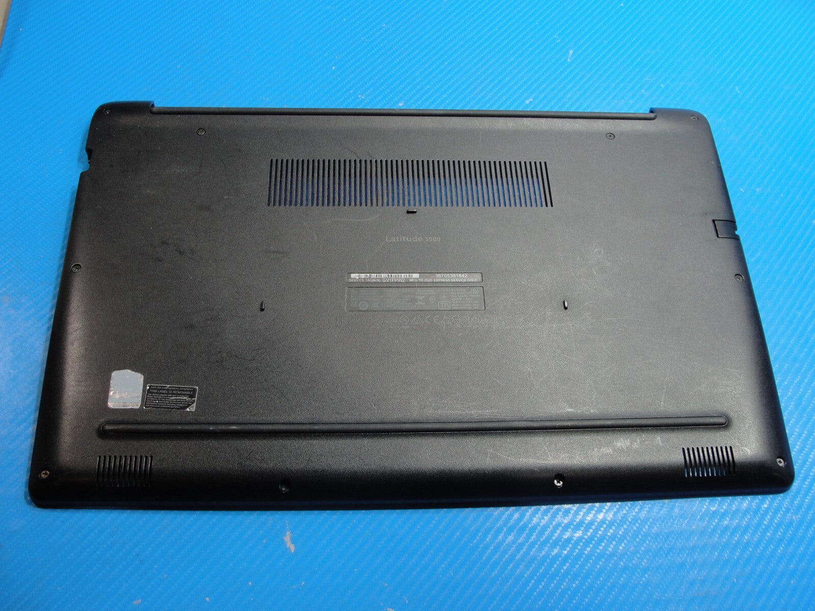 Bottom Case has been gently removed from a working Dell Latitude 3500 laptop and is in GOOD working and cosmetic condition, shows minor scratches and marks, dent top left edge. Actual item pictured.