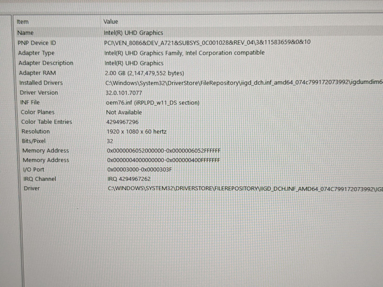 GPU: Intel UHD Graphics