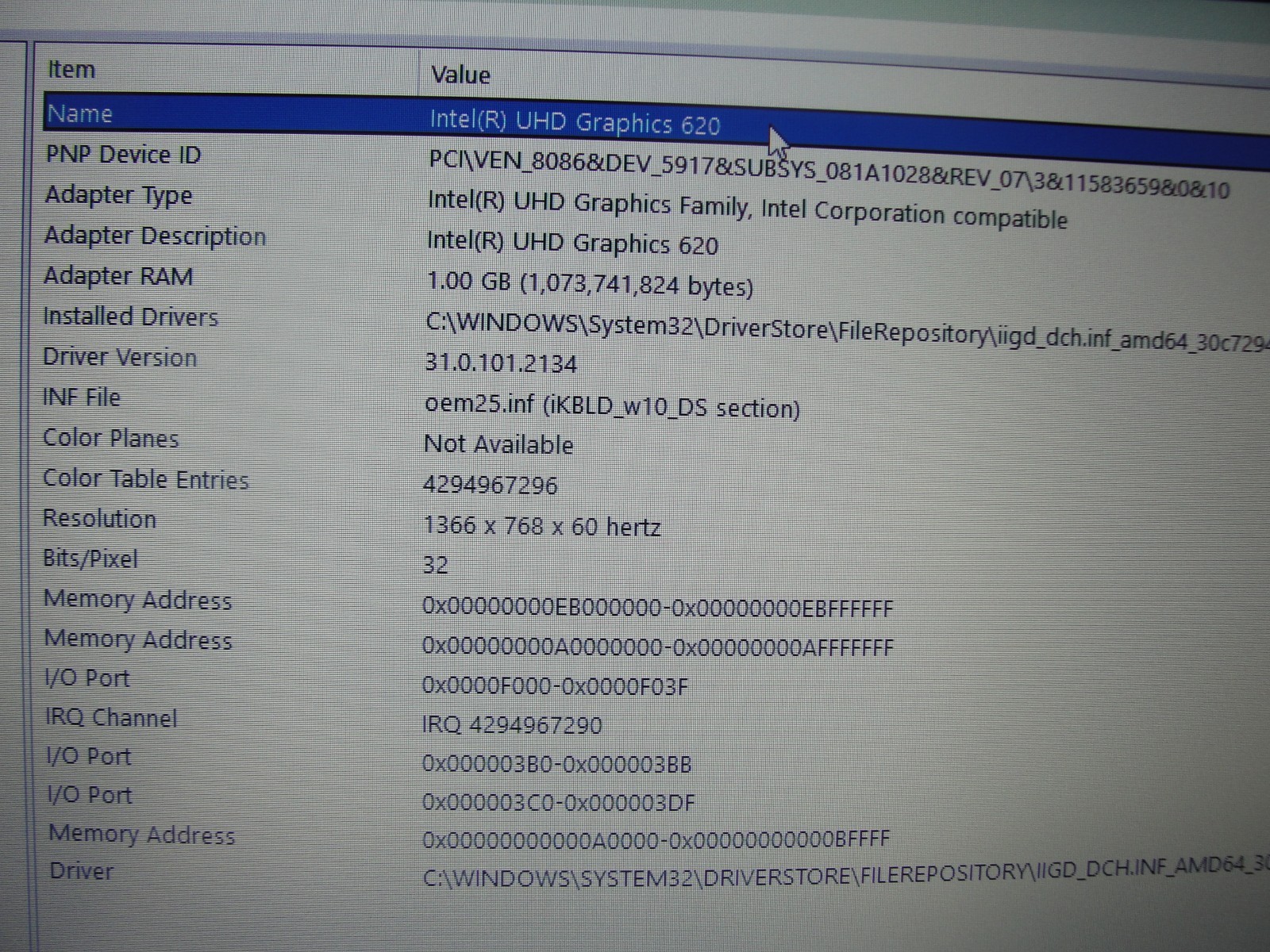 - Processor: Intel Core i5-8350U @ 1.7GHz