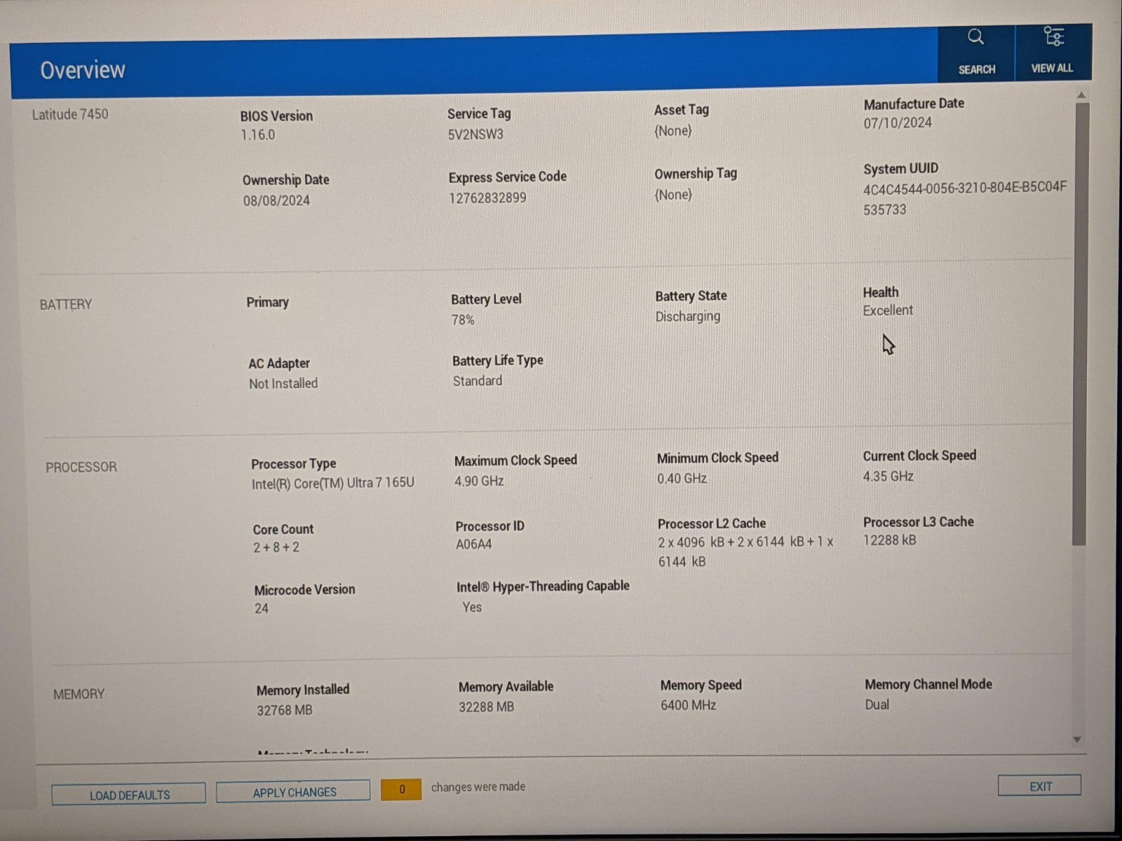 Model: Dell Latitude 7450
