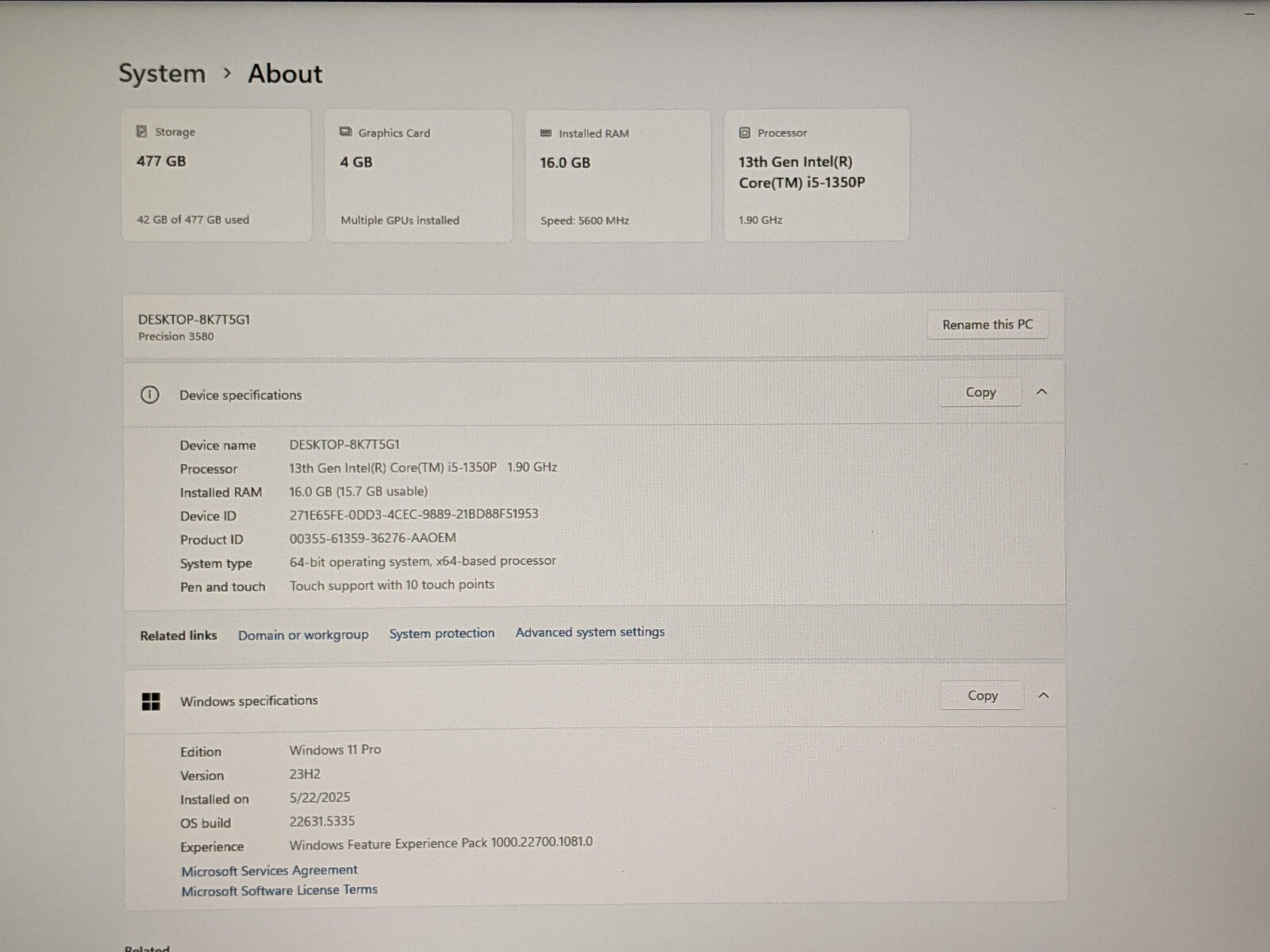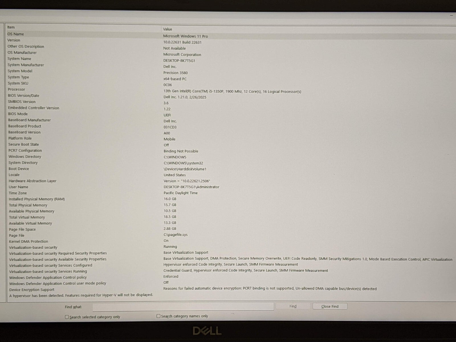 Model: Dell Precision 3580