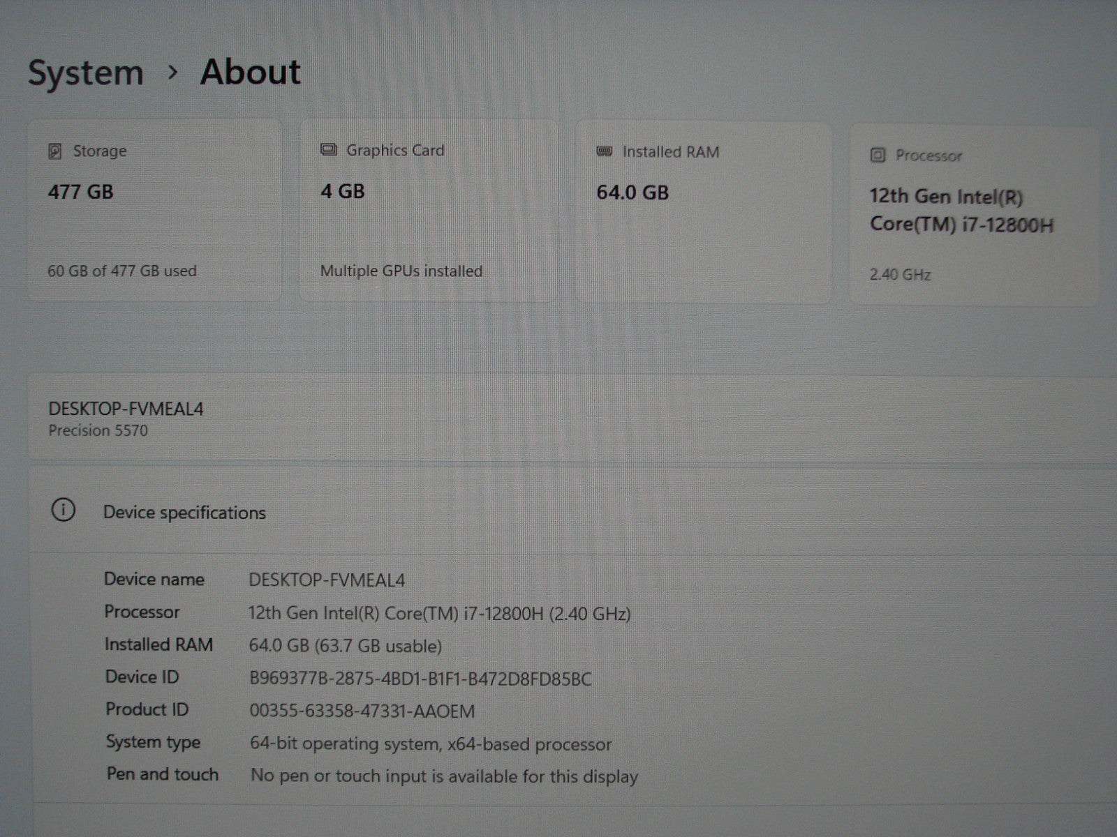 - Dell Precision 5570 15.6"FHD+ i7-12800H 2.4GHz 64Gb 512GB RTX A1000 Warranty2026 Dell Precision 5570 15.6"FHD+ i7-12800H 2.4GHz 64Gb 512GB RTX A1000 Warranty2026