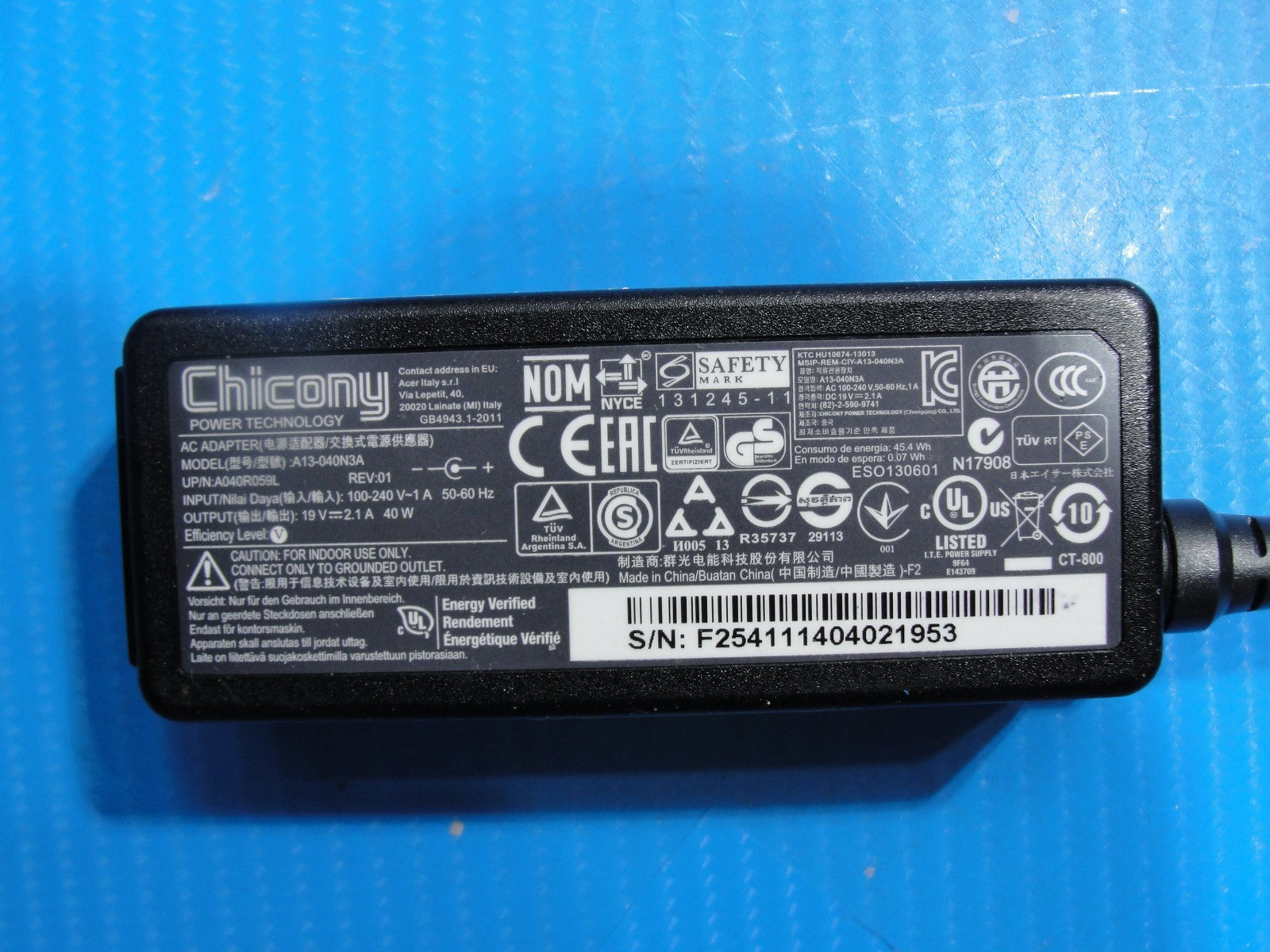 - Genuine Chicony AC Adapter 40W A13-040N3A 19V 2.1A 5.0×2.0 mm Tip, No Center Pin Genuine Chicony AC Adapter 40W A13-040N3A 19V 2.1A 5.0×2.0 mm Tip, No Center Pin
