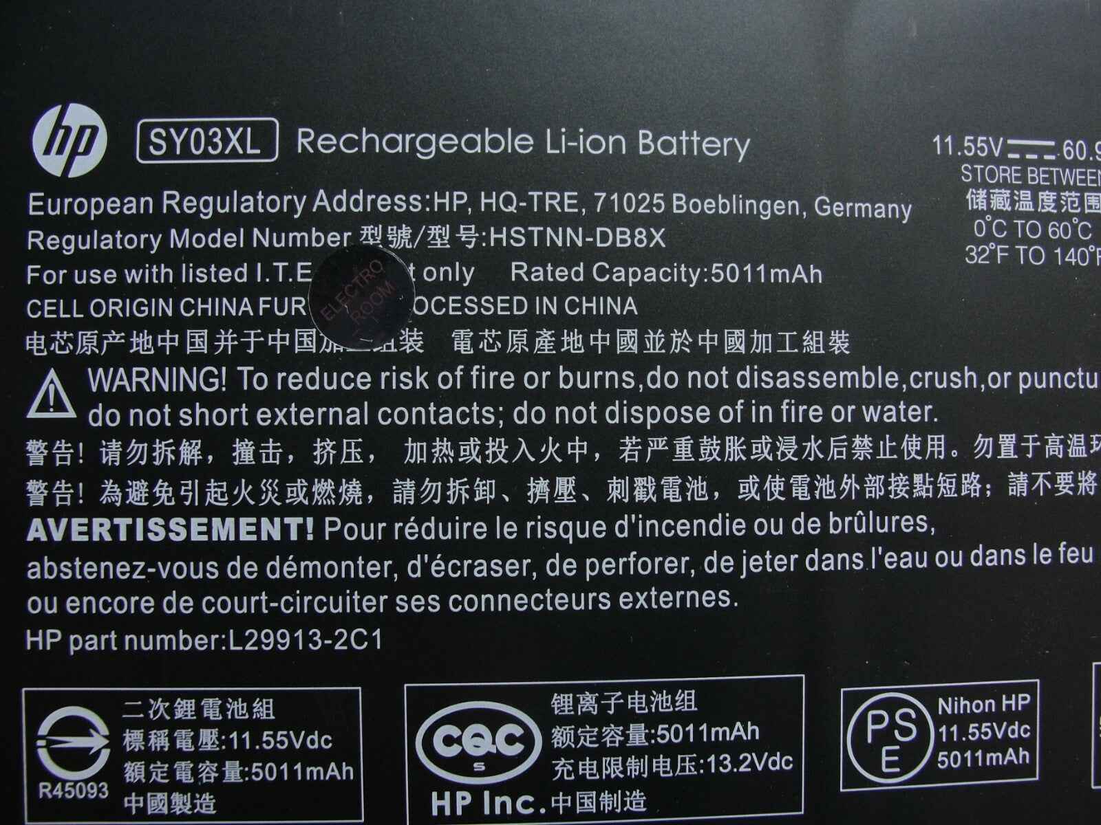 - HP Chromebook x360 14 G1 14" Battery 11.55V 60.9Wh 5011mAh SY03XL HP Chromebook x360 14 G1 14" Battery 11.55V 60.9Wh 5011mAh SY03XL