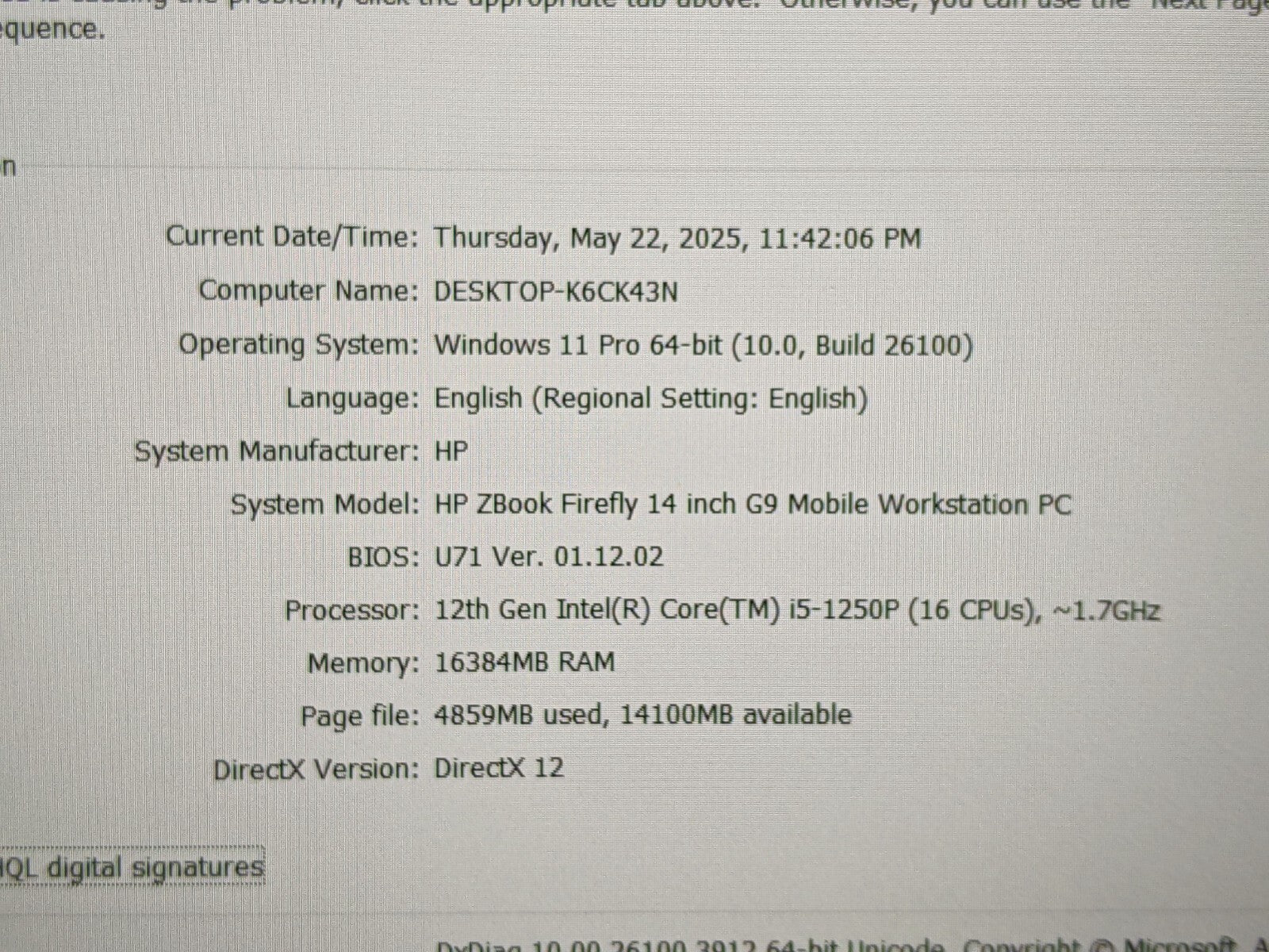 Model: HP ZBook Firefly G9 14