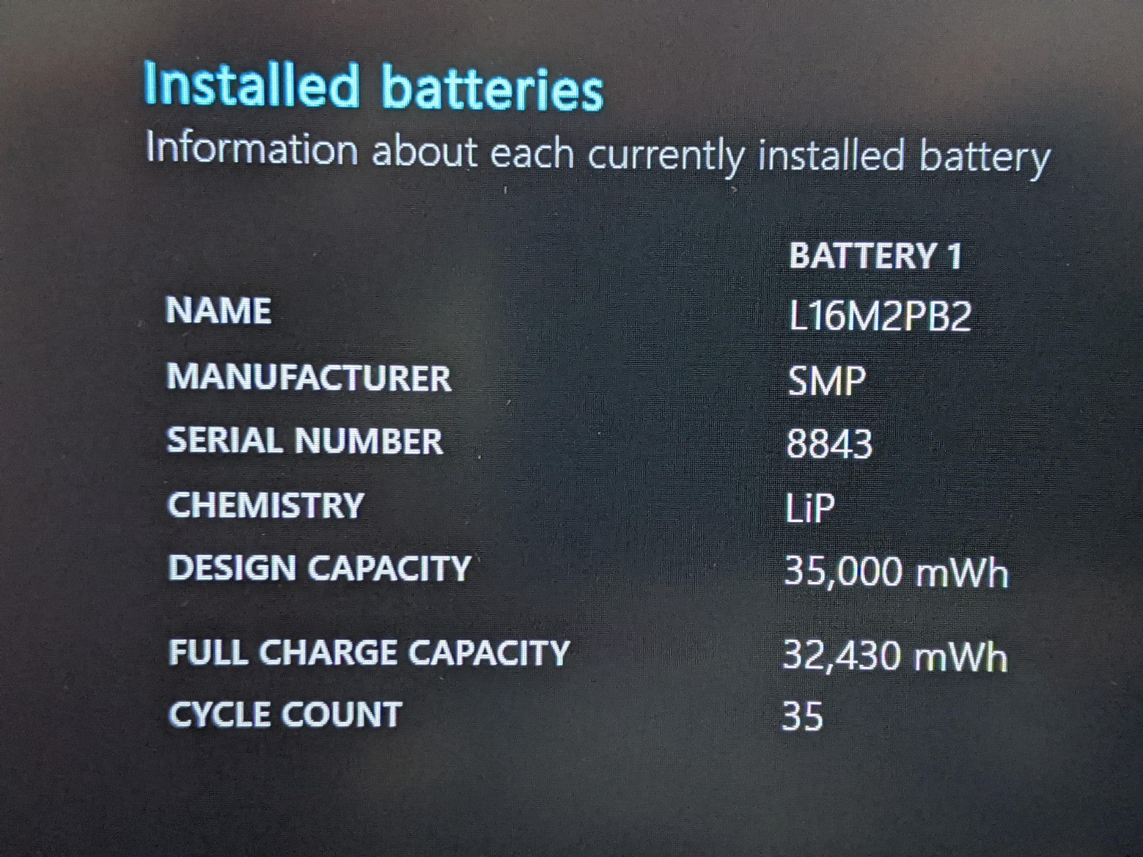 Battery: 91%, 35 cycles