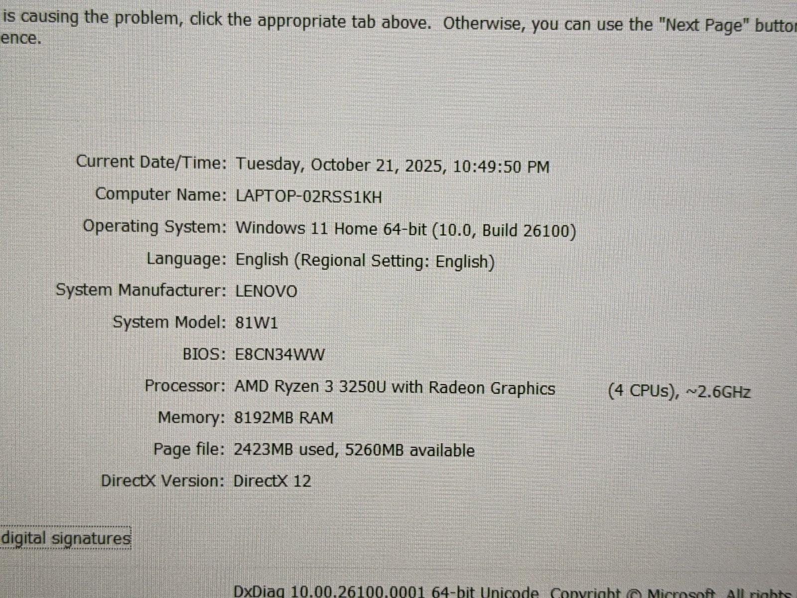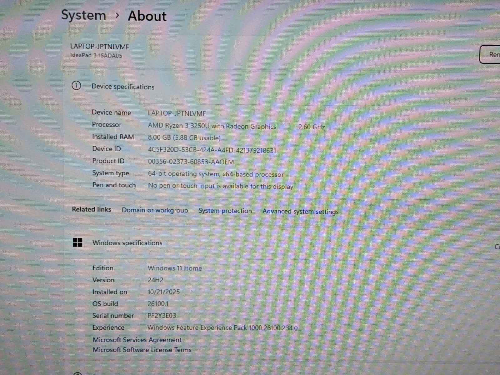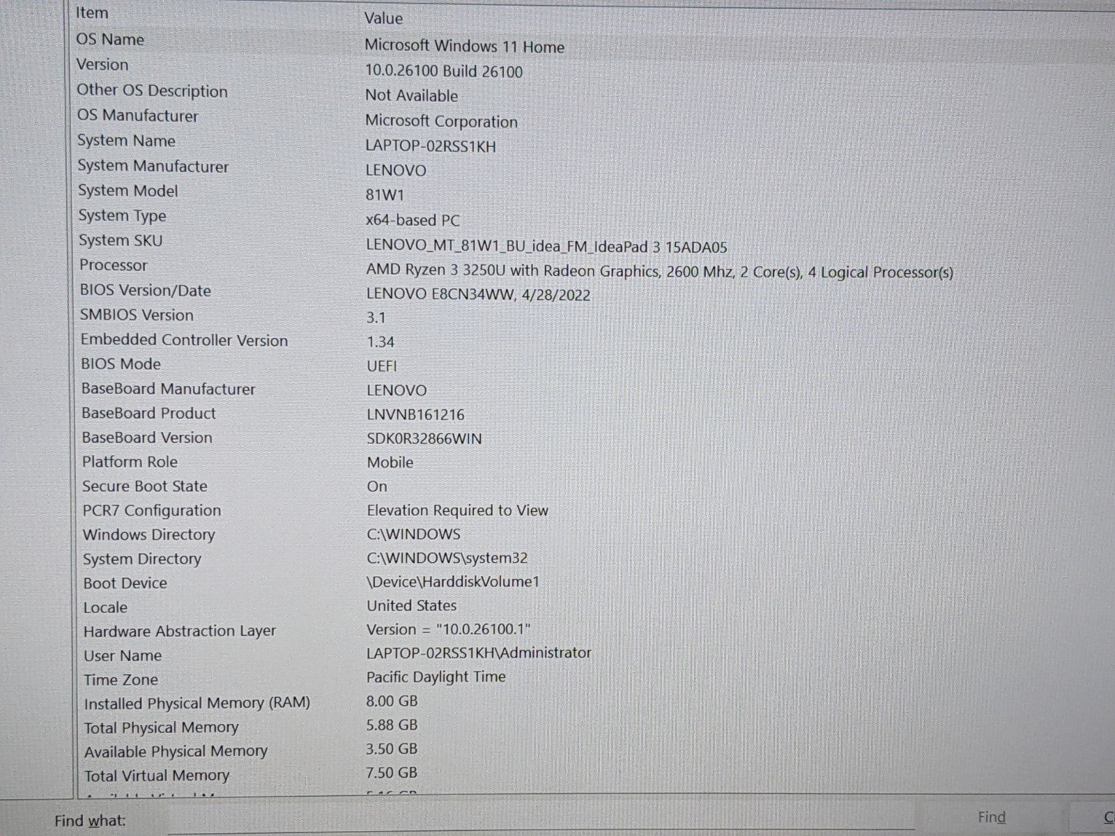 Model: Lenovo IdeaPad 3 15ADA05