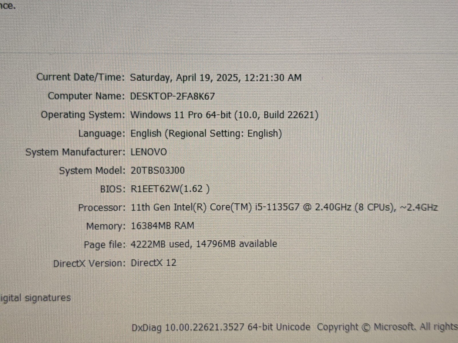 MPN: PF2G76RW,20TBS03J00