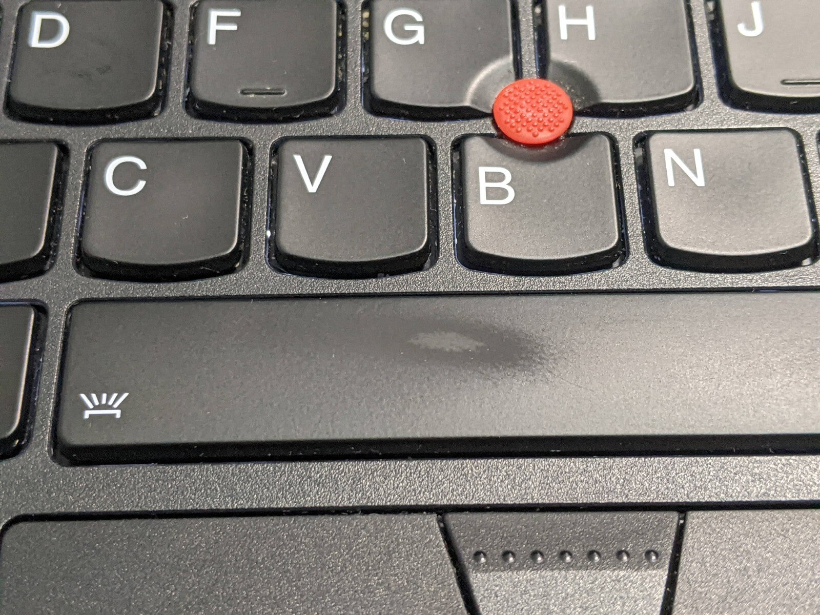 Palmrest, Keyboard and Touchpad: very faint shine after previous use; the Space key has a prominent mark (does not affect functionality, images included)