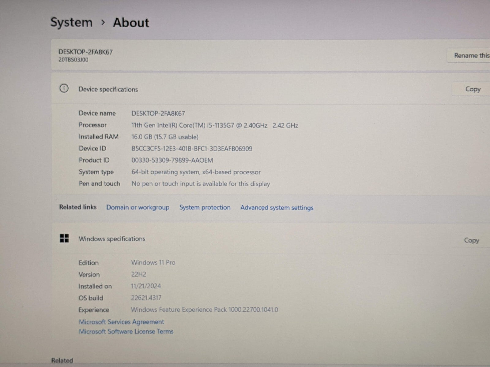 Operating System: Windows 11 Pro