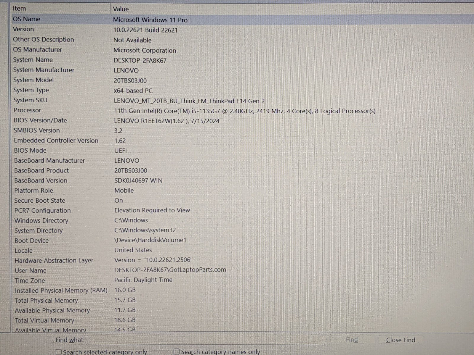 Model: Lenovo ThinkPad E14 2nd Gen