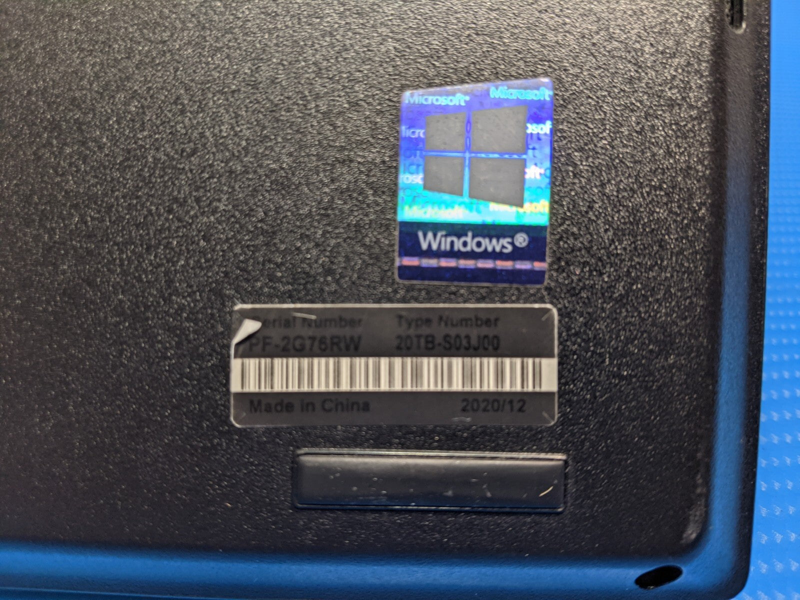 Serial Number: PF2G76RW Machine Type Model: 20TBS03J00