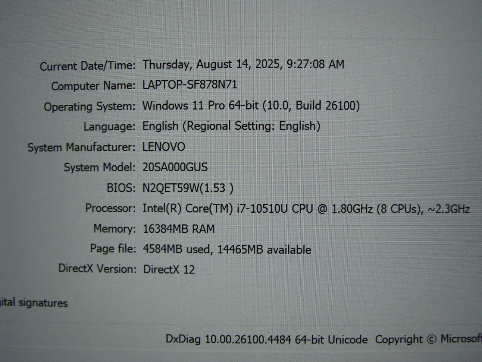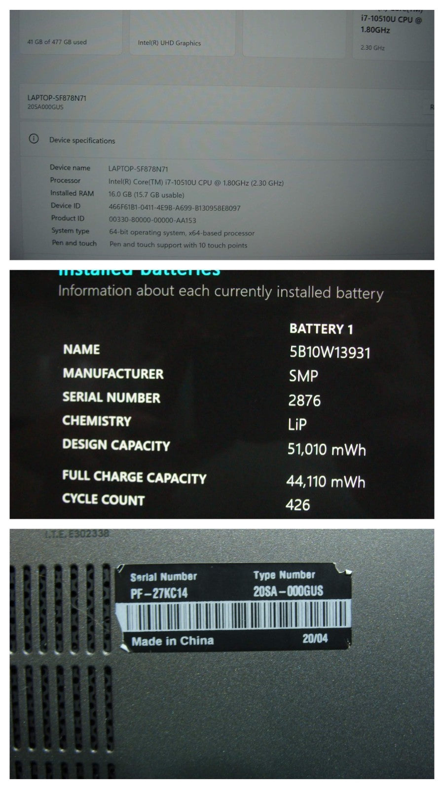 Serial Number PF27KC14 Machine Type Model 20SA000GUS