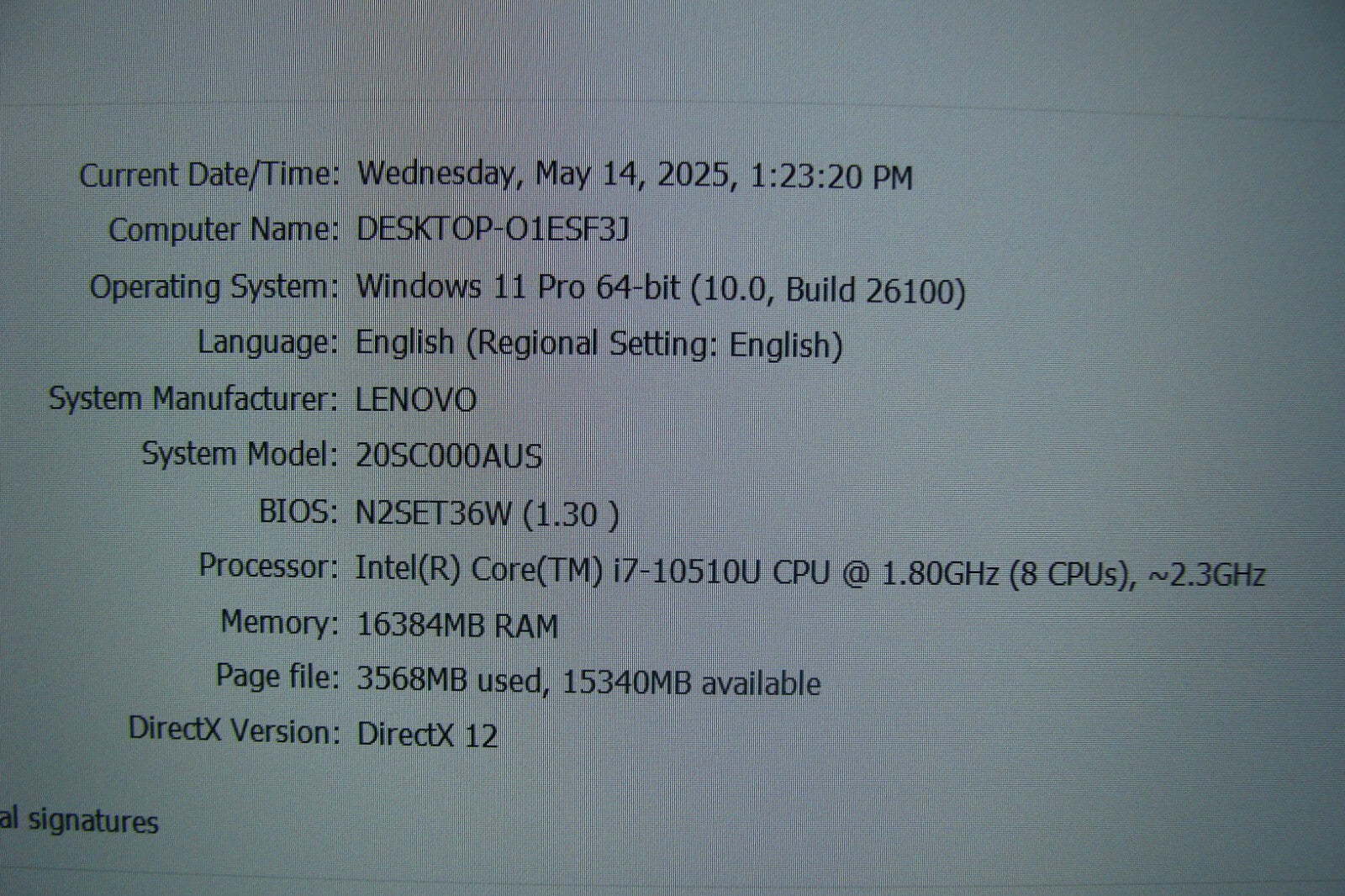 #6 Serial Number PC1HBWDF Machine Type Model 20SC000AUS