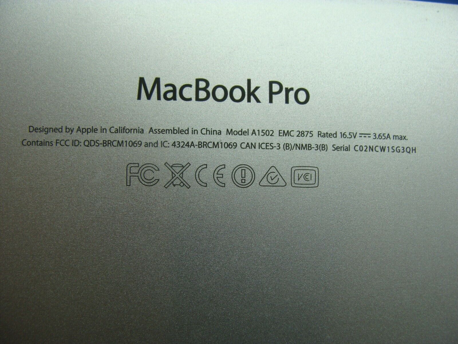 MacBook Pro A1502 13" 2014 MGX72LL/A MGX82LL/A Housing Bottom 923-00108 #7 ER*
