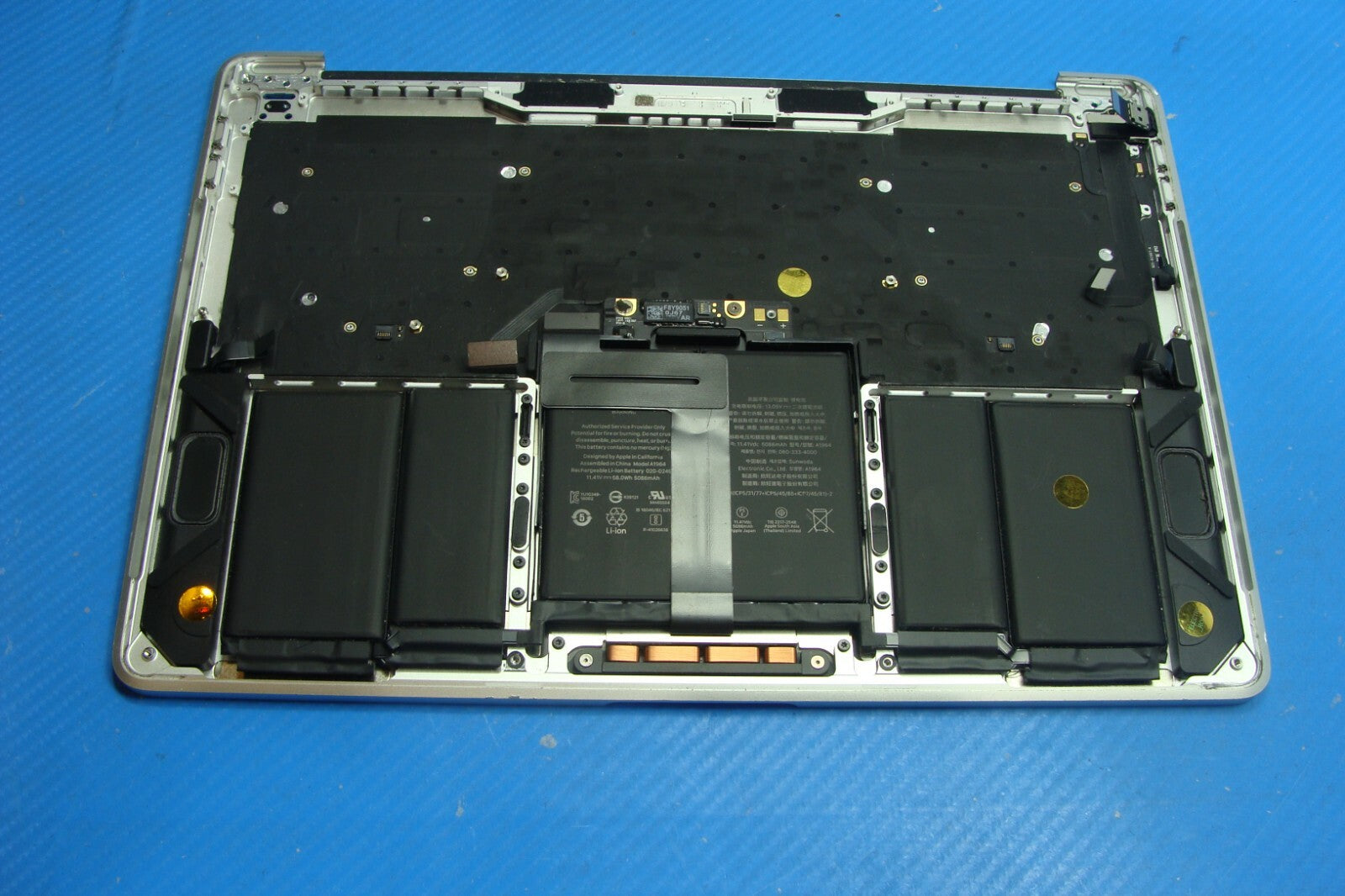 - MacBook Pro A1989 13" 2018 MR9U2LL Top Case Palmrest w/Battery Silver 661-10361 MacBook Pro A1989 13" 2018 MR9U2LL Top Case Palmrest w/Battery Silver 661-10361