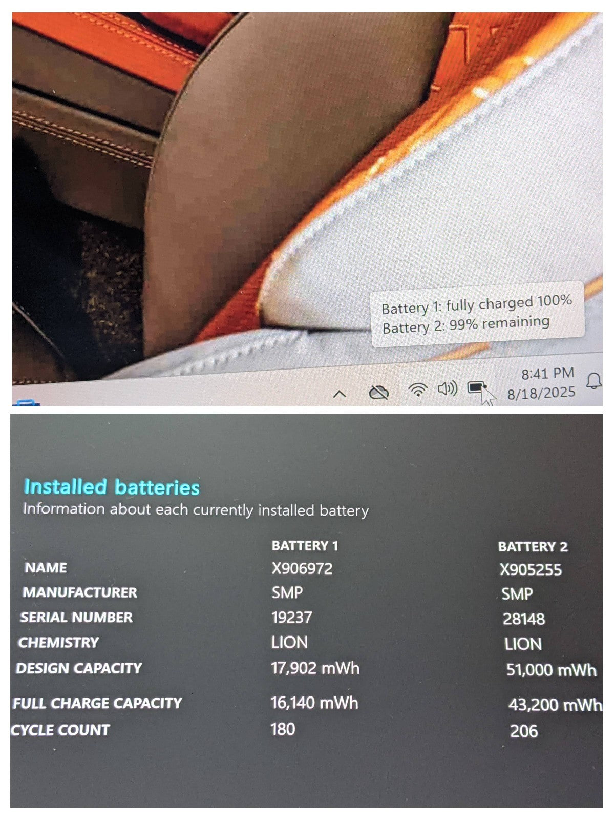 Batteries: Good - TABLET @90% (16.1 of 17.9 Wh); BASE @85% (43.2 of 51 Wh)
