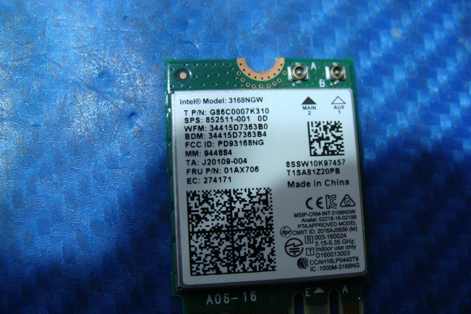 - MSI GL62M 15.6" Genuine Laptop Wireless WiFi Card 3168NGW 01AX706 852511-001 MSI GL62M 15.6" Genuine Laptop Wireless WiFi Card 3168NGW 01AX706 852511-001