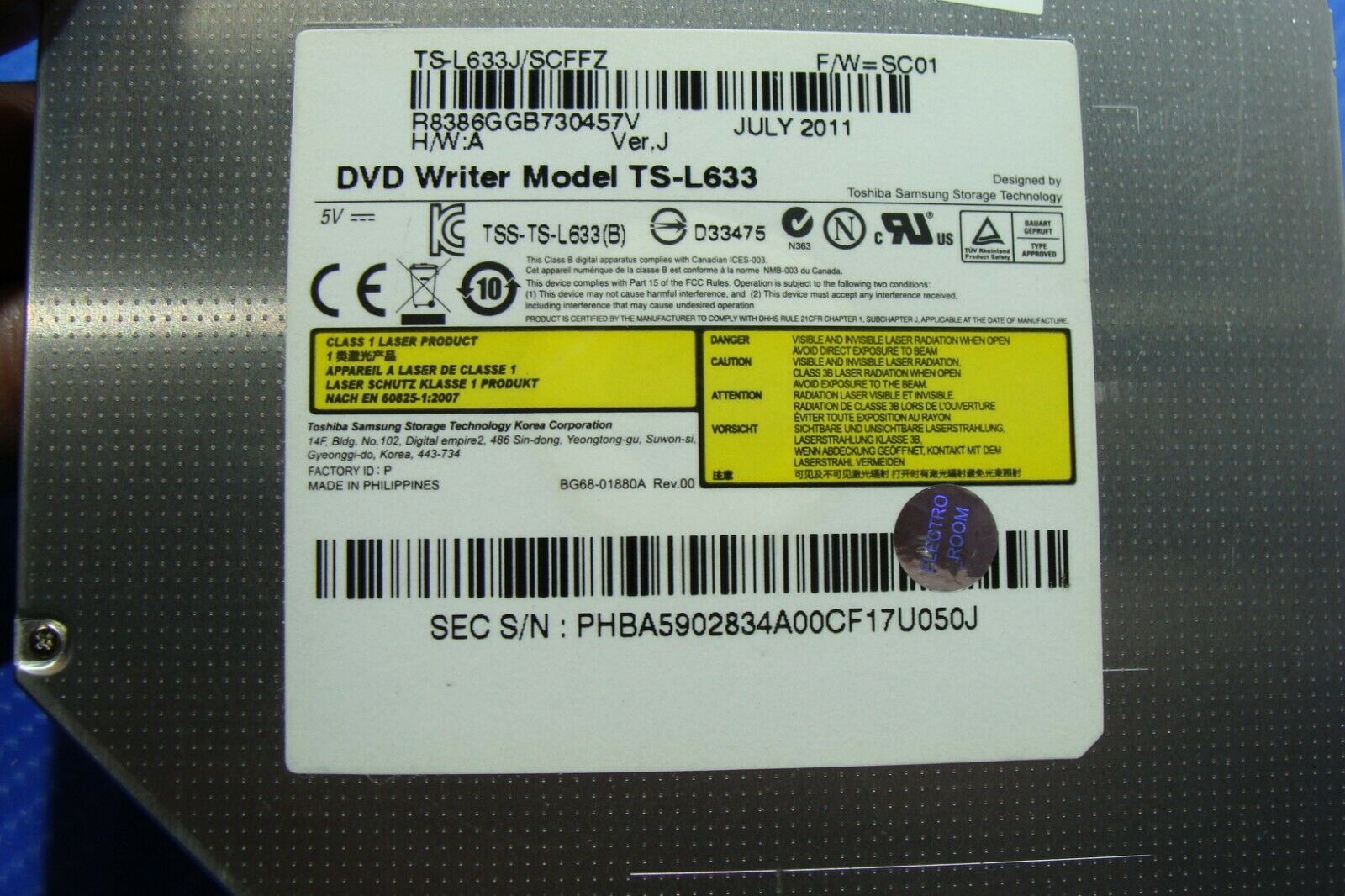 Samsung NP-RV510-A05US 15.6" Genuine Laptop DVD Burner Drive TS-L633
